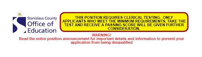 ALL APPLICANTS MUST APPLY ON EDJOIN: Select "Apply" on the position announcement. All required documents must accompany your online application. If you are viewing a printed copy of this announcement go to www.stancoe.org/employment, select position of interest.